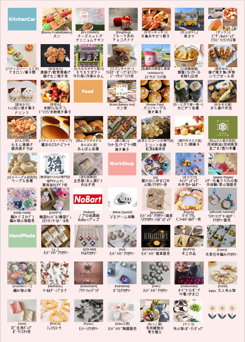 昨年度に引き続き、キッチンカーやハンドメイド雑貨屋が約60店舗出店する「tutti marche」も合同開催です。