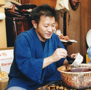 和紙に古書を使うのが特徴で、下張り、中張り、仕上げと小さな製品でも60枚も張り重ね、これに柿渋(5年間寝かせておいた特別製)を塗り、乾燥させてはまた塗ります。独特の光沢ある色を付けるために一度塗っては陰干しする工程を数十回と繰り返すため、一つの製品が出来上がるまで、ほぼ一ヶ月かかります。